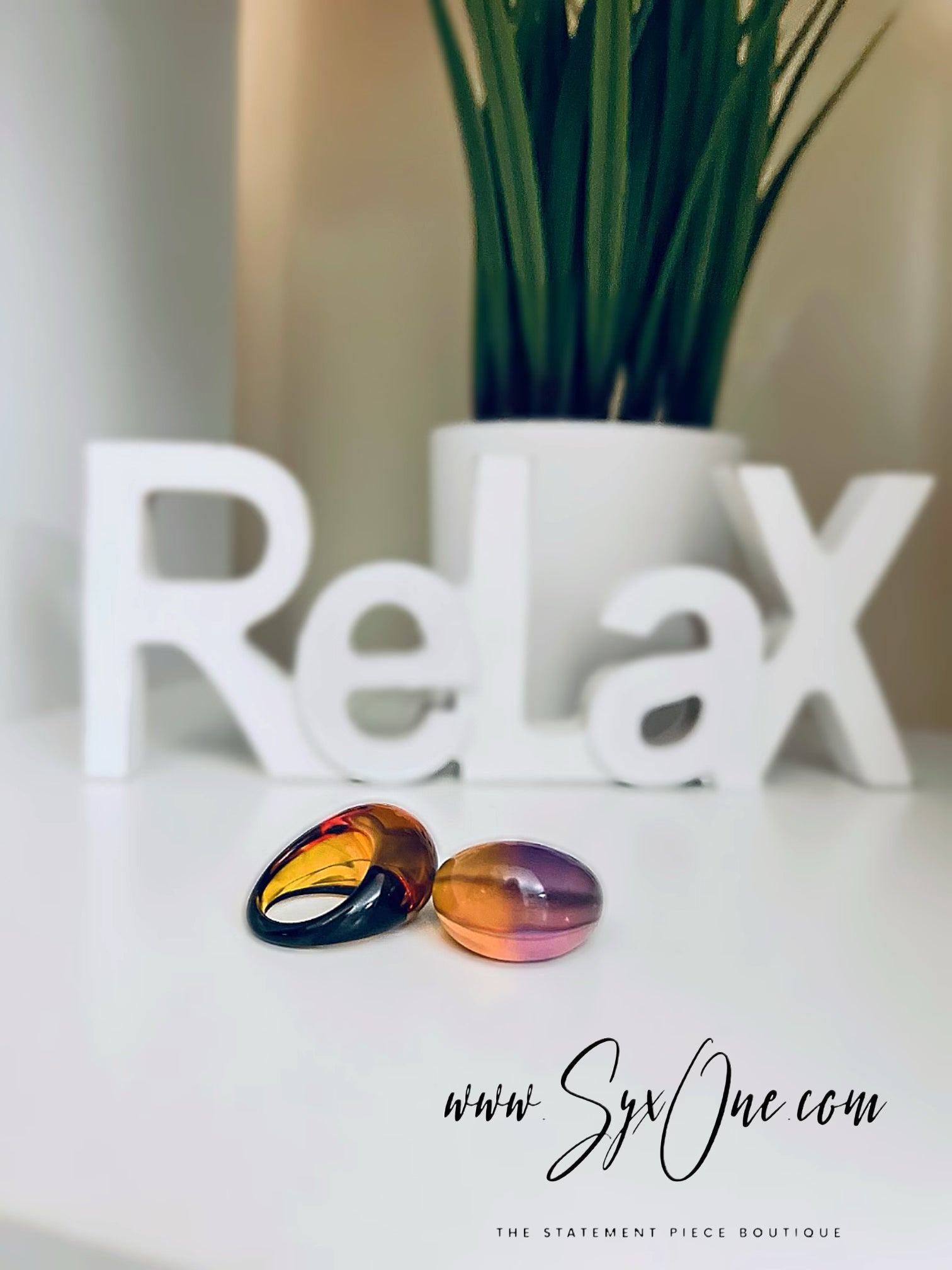 This unique translucent ring changes colors when exposed to light. It can be stacked with our "Moodies" collection to make a bold statement, or worn as a midi ring. Made of safe resin materials, it is one size fits most and can even be worn in water.