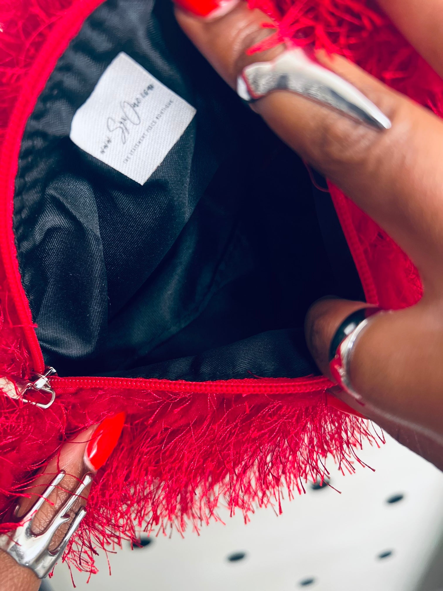 The “Gabor” handbag is perfect for anyone who wants a lightweight, yet spacious bag. With a soft, fuzzy texture and compact size of 19 cm long and 8 cm wide, this bag can hold all your essentials without weighing you down. Ideal for those looking for functionality and style.