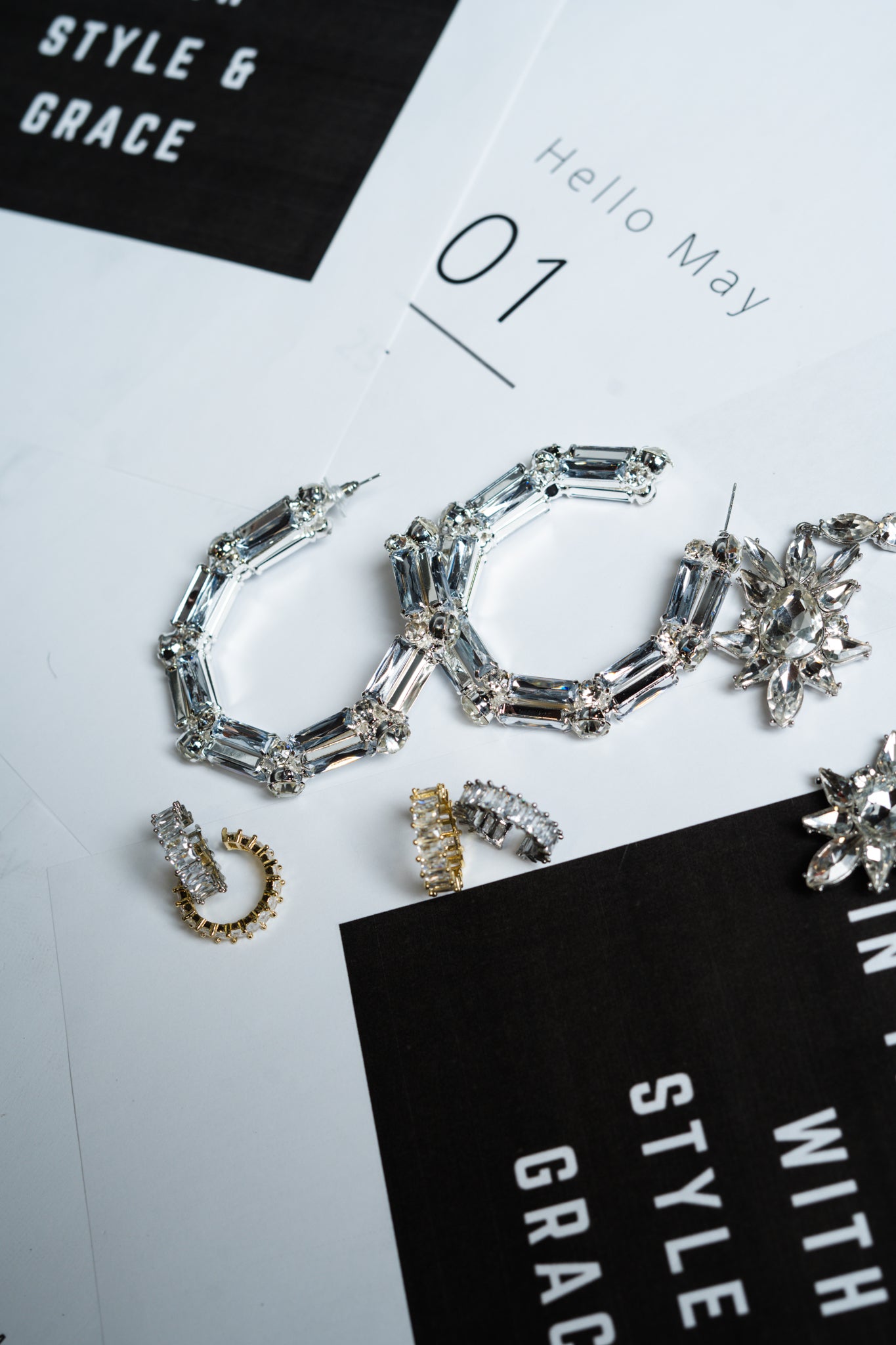 These rhinestone hoops are chunky, with a beautiful shine that will compliment any look. They are available in both gold and silver options.