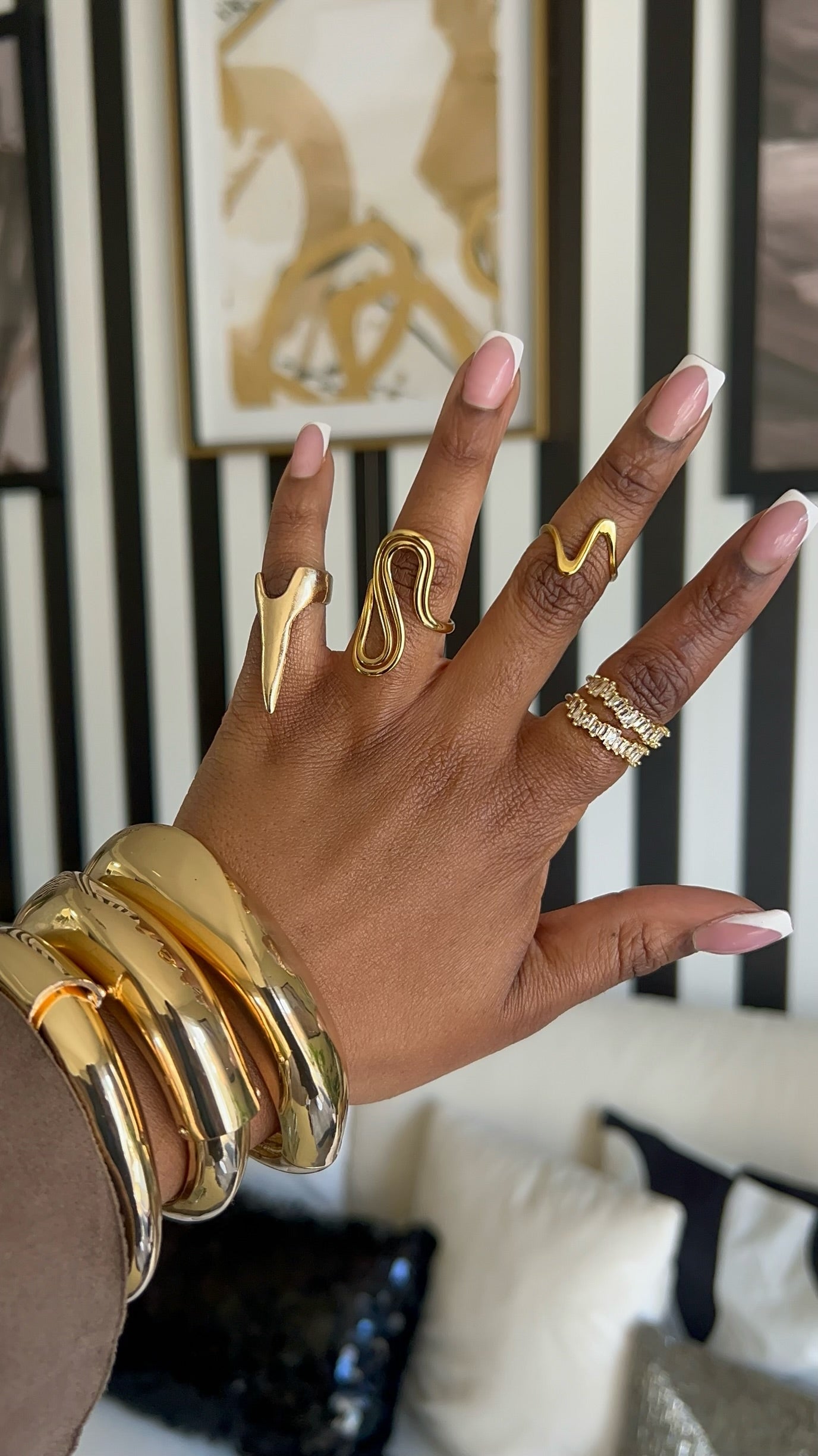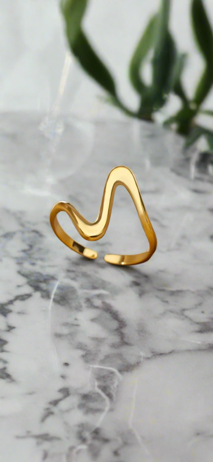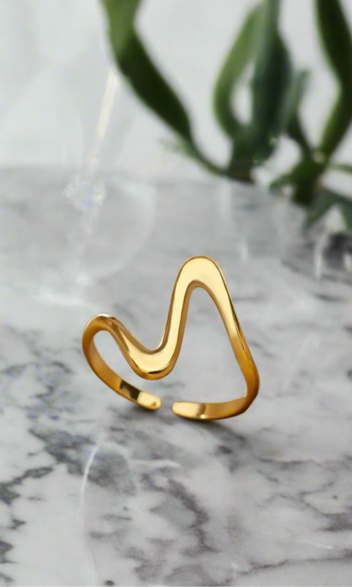 Introducing “Max”, the perfect addition to your jewelry collection. Made of high-quality stainless steel and gold plating, this ring features a unique wavy design that can be adjusted to fit any finger. Stack it with other rings for a stylish and versatile look. Elevate your style with “Max”.