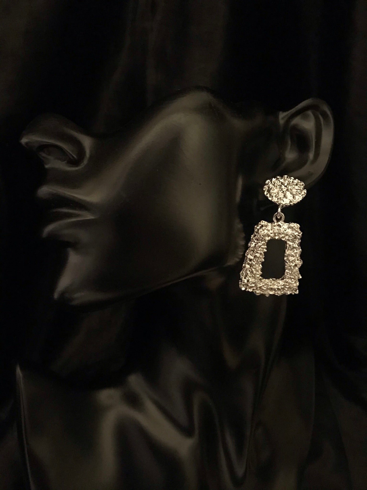 Expertly crafted from lightweight metal, these hanging earrings feature a unique textured design, adding a touch of elegance to any ensemble.