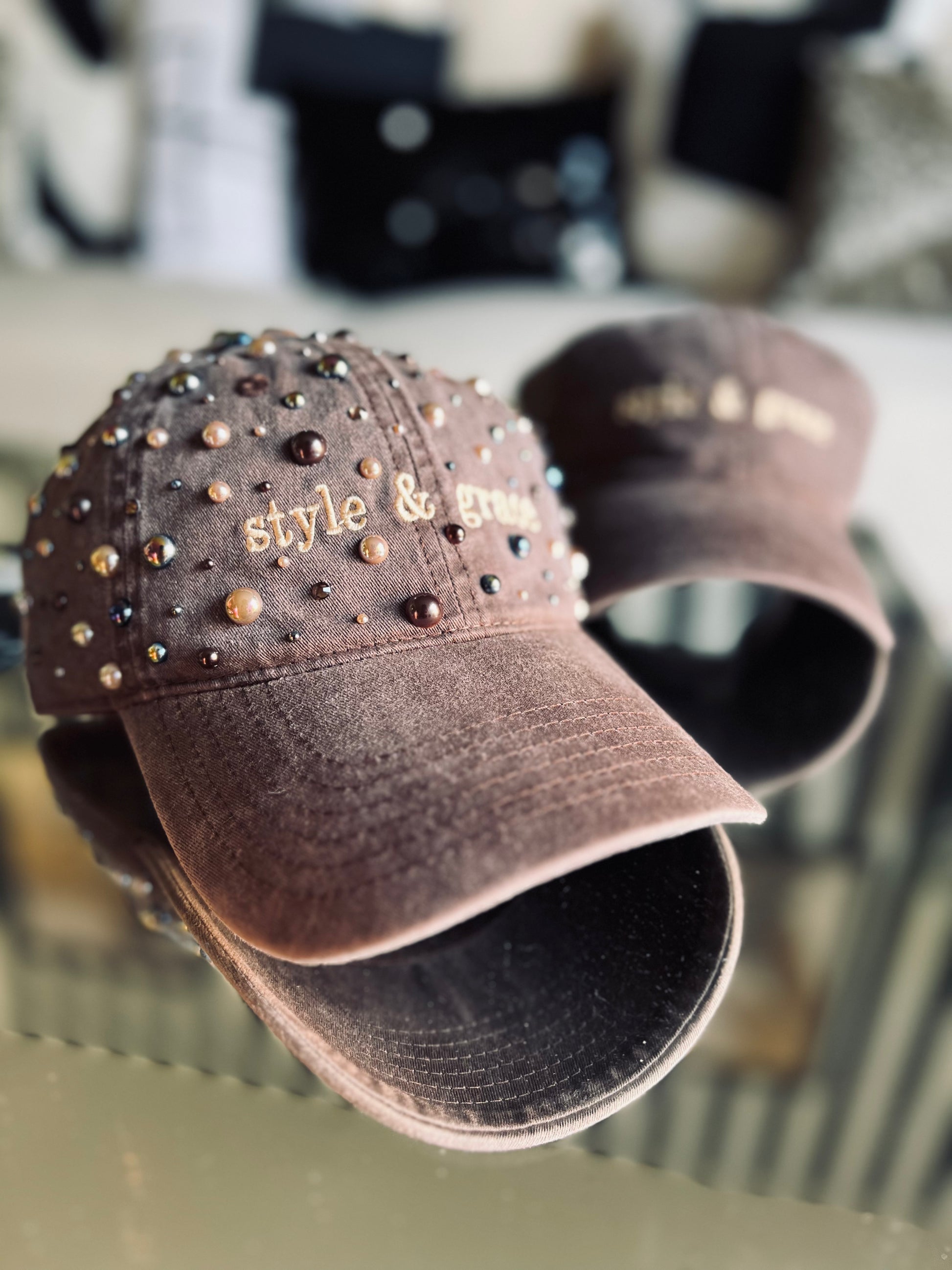 This dad hat is totally versatile, coming in mocha, denim, or orange with either a plain jane style or a custom pearl design. You can switch it up depending on your mood or match it to your outfit du jour!