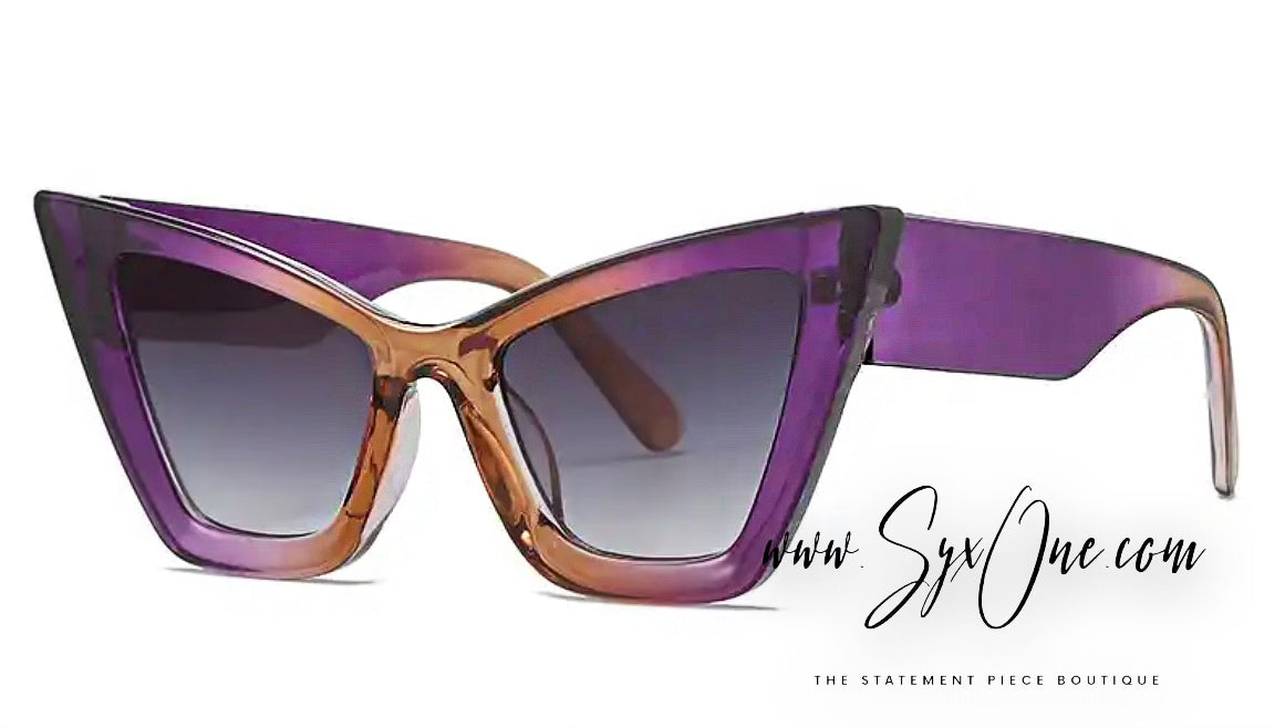 Elevate your style with the ultimate oversized cat eye frames! Perfect for brunch or a busy day out, these sunglasses will make a bold statement when paired with your favorite Syx One pieces. Available in a variety of colors including milk chocolate, onyx with a mint tint, leopard, and purple rain with a pinch of caramel.