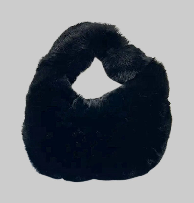 This plush faux fur “Yeti” bag features a half moon shape and a short strap, and measures 9 inches in width and 6 inches in height. It is available in both cream and black and provides ample space for all your necessities.