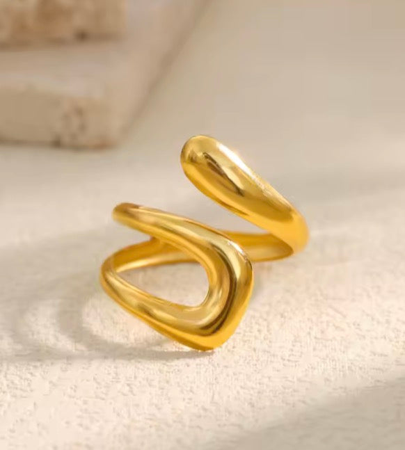 The Yukon ring, a striking embodiment of modern artistry, features an abstract shape crafted from premium stainless steel. Hypoallergenic and adjustable, its elegant design invites effortless stacking with your cherished pieces, allowing personal expression and refinement in every ensemble. This exquisite adornment transcends mere jewelry, becoming a statement of individuality.